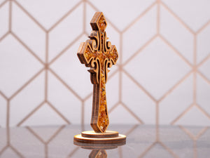This Amber Cross Figurine stands on a sturdy base, making it perfect for displaying on tables, shelves, or altars. It serves as an ideal gift for special religious occasions such as Baptism, First Communion, or Confirmation, providing a meaningful and lasting memento.
