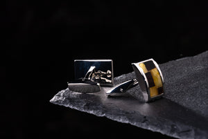 Enhance your wardrobe with these exquisite amber cufflinks, meticulously crafted to combine timeless elegance with modern sophistication. Each pair features stunning amber stones, renowned for their rich, golden hues and unique inclusions that capture the essence of nature's beauty.