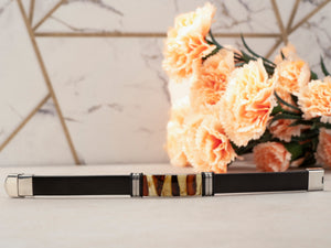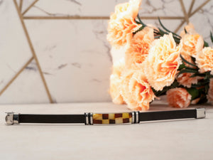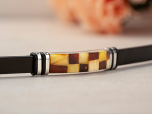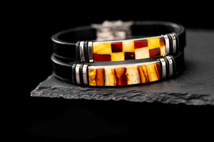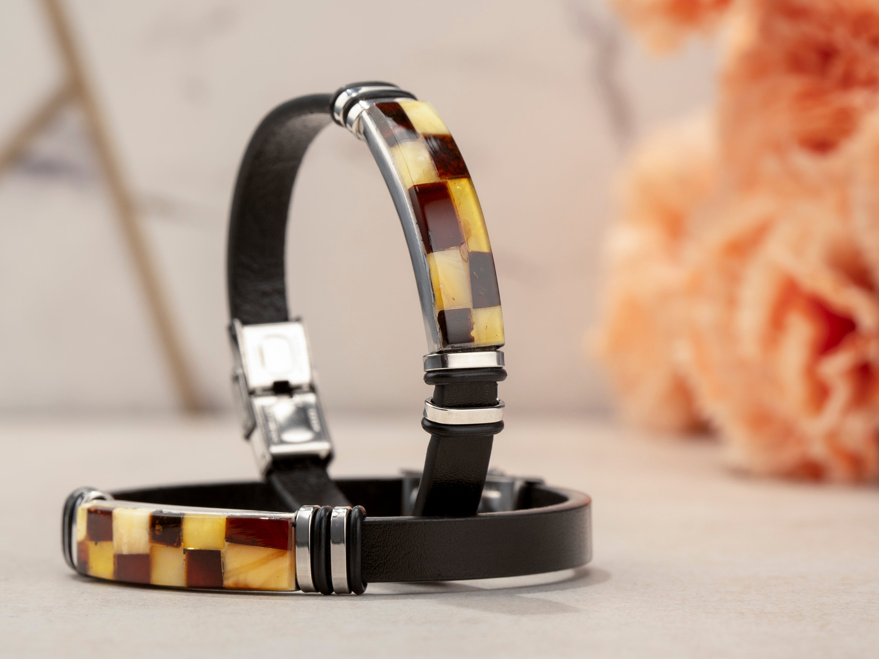 â—‰ Design: Amber mosaic set in a sturdy leather band