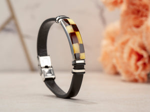 Elevate your style with our exquisite handcrafted unisex leather bracelet adorned with a stunning amber mosaic. Each piece is meticulously crafted to capture the essence of bohemian elegance, making it a perfect addition to any outfit, whether you're dressing up for a special occasion or adding flair to your everyday look.