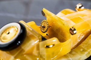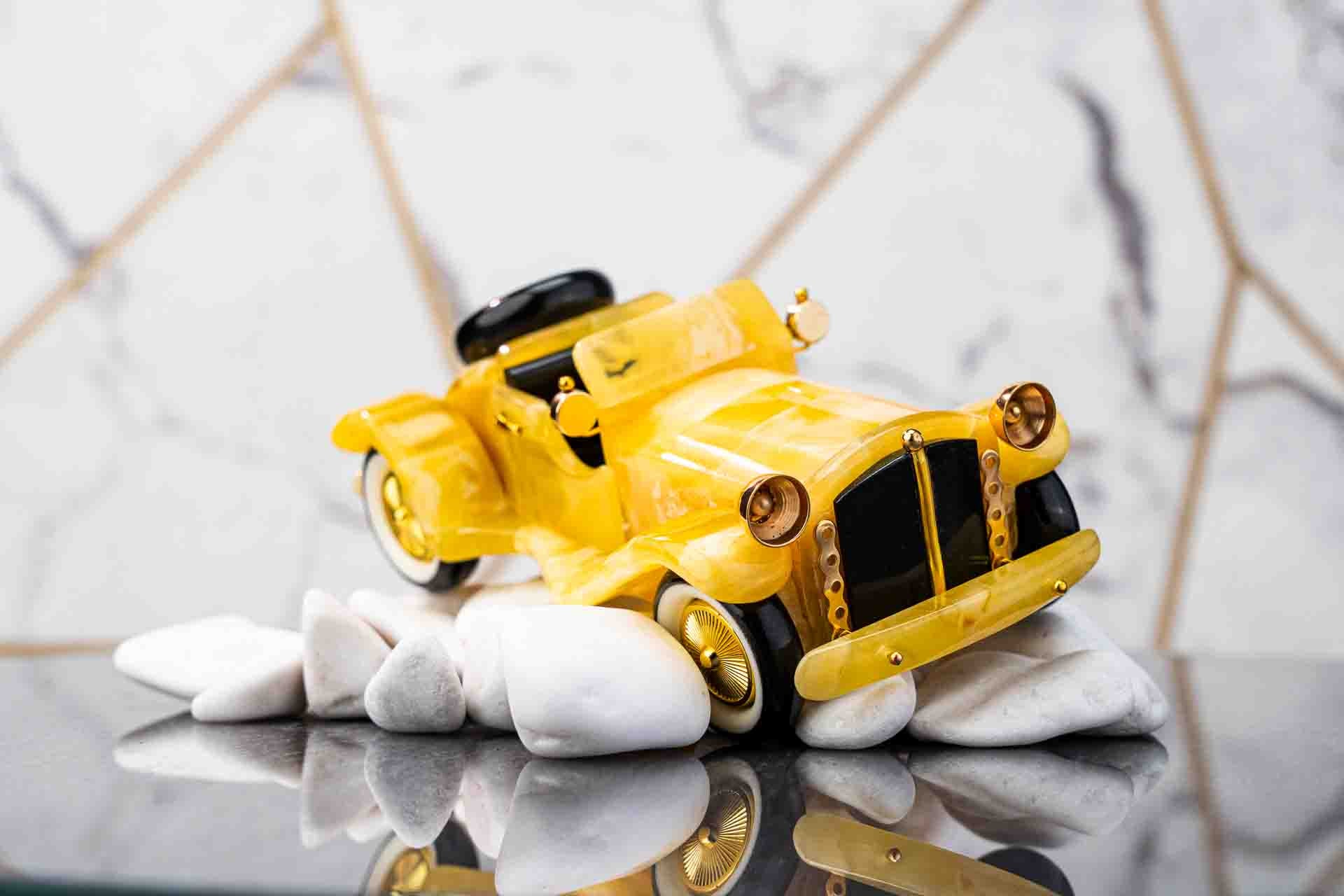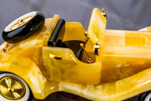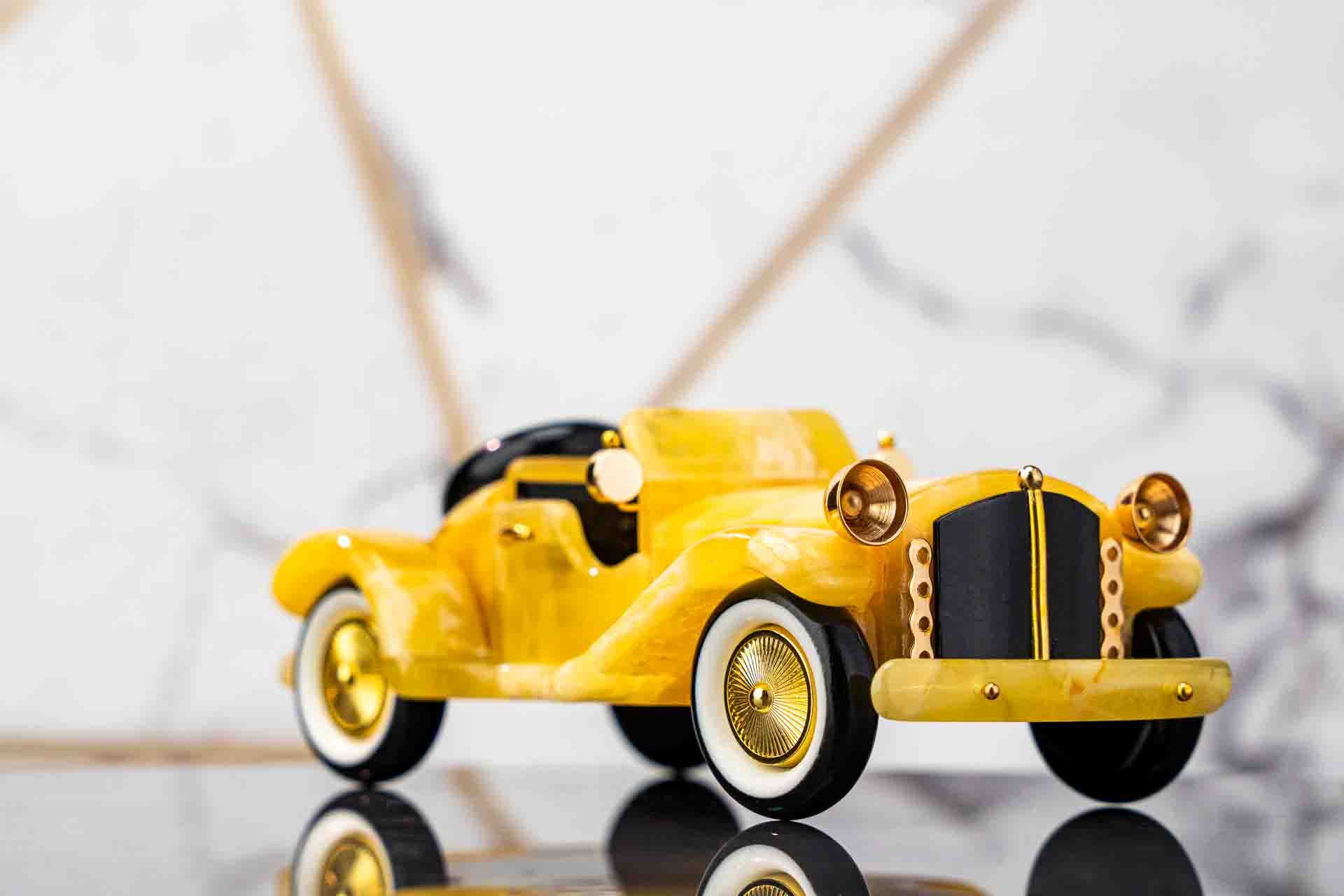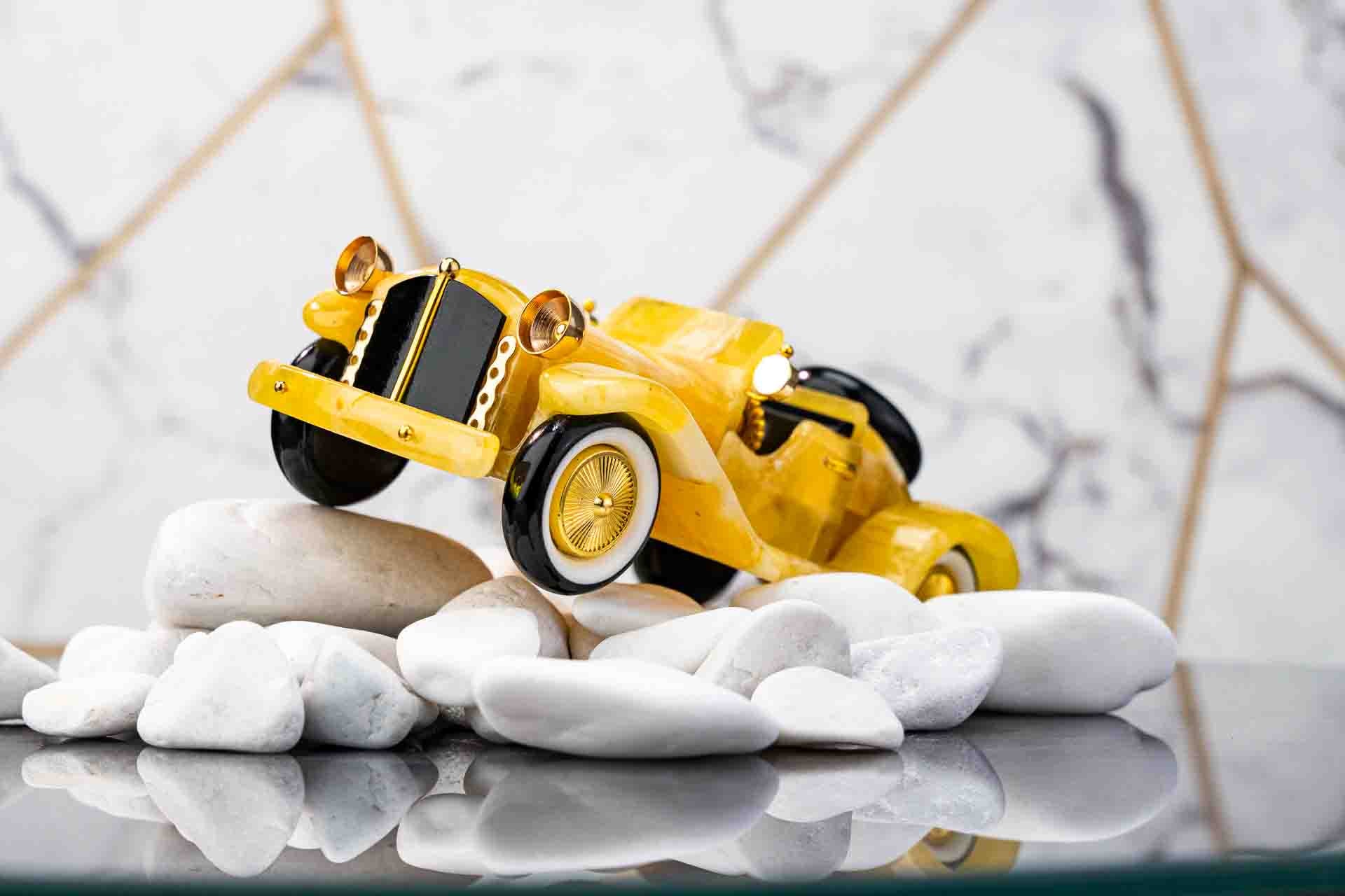 Elevate your home or office with our exquisite amber car figurine, a symbol of luxury and meticulous craftsmanship. Designed for car enthusiasts and discerning collectors, each sculpture captures the essence of classic automobiles with stunning, intricate details. Crafted from white amber with yellow hues and highlighted by cherry-colored accents, this piece adds a sophisticated and vibrant touch to any setting.