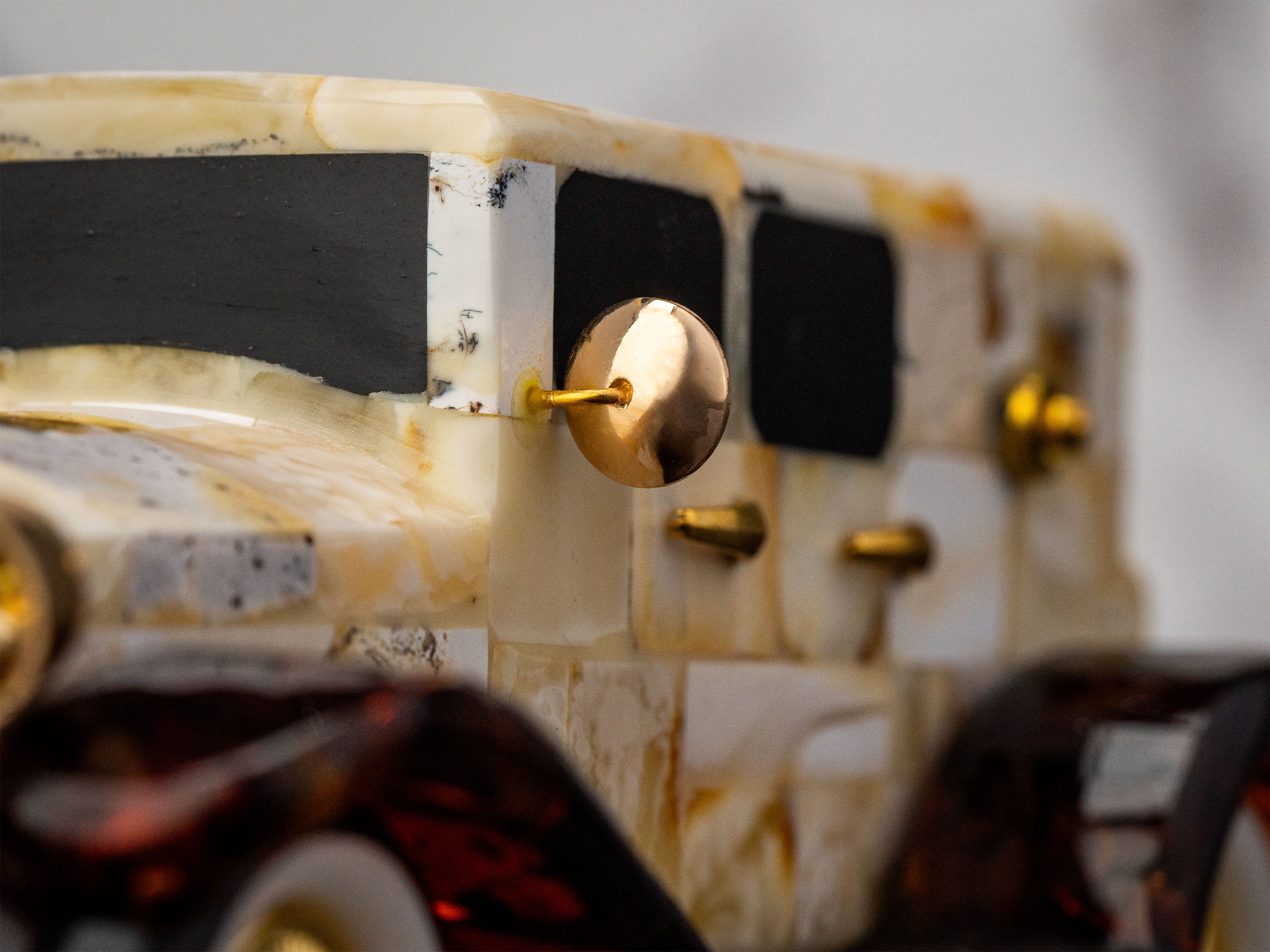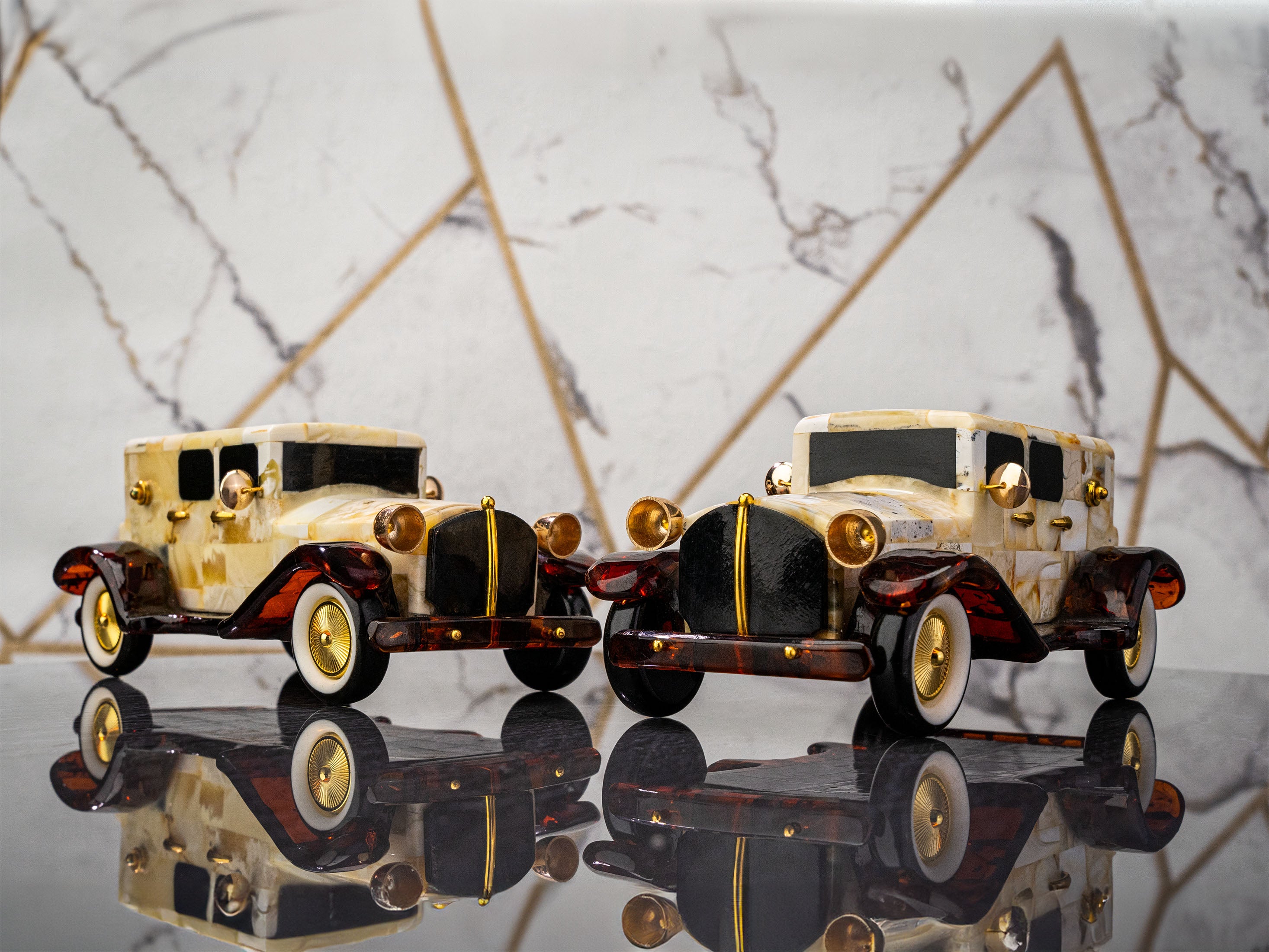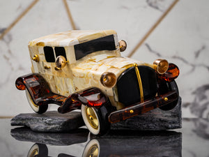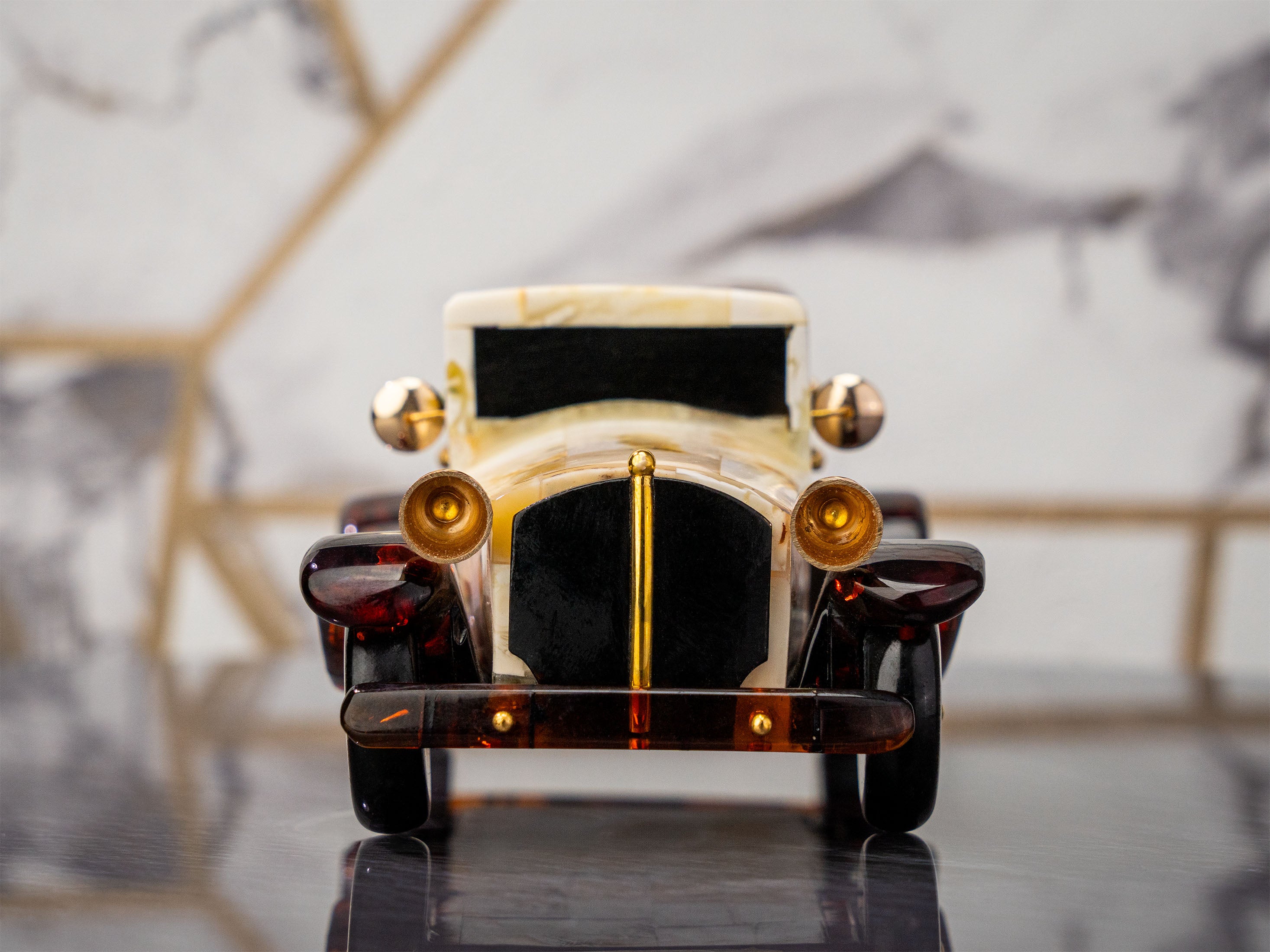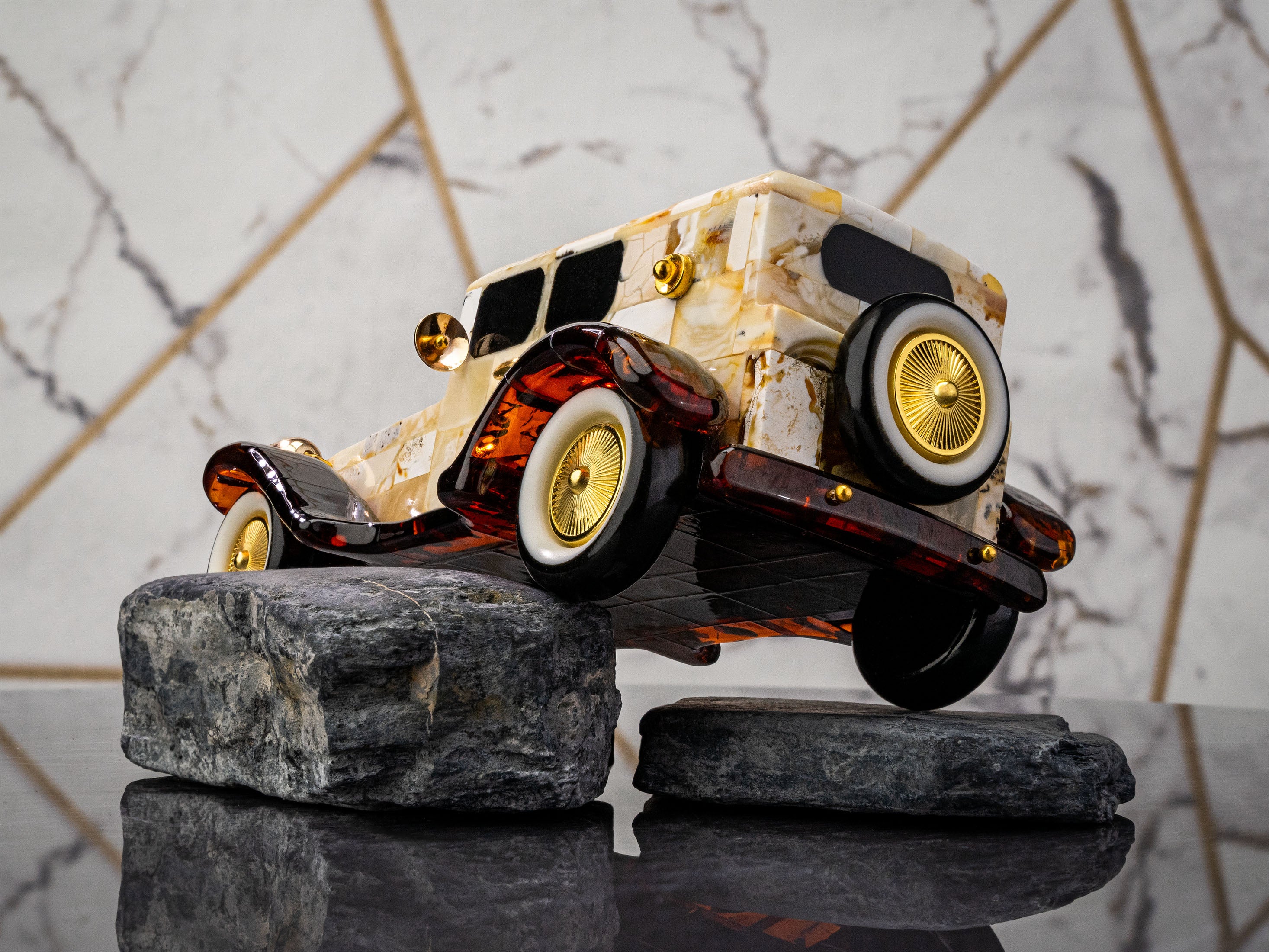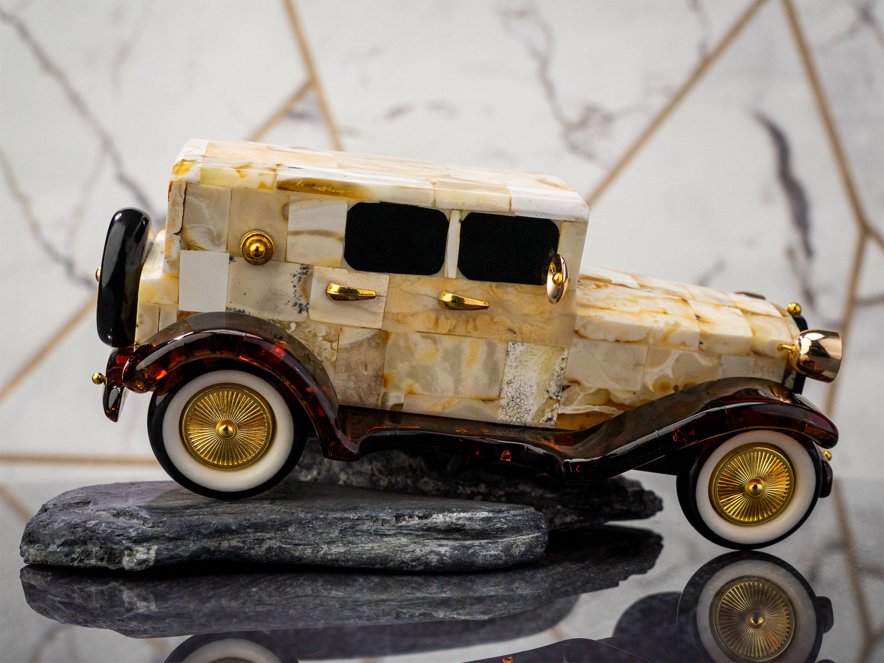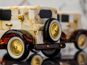 Elevate your home or office with our exquisite amber car figurine, a symbol of luxury and meticulous craftsmanship. Designed for car enthusiasts and discerning collectors, each sculpture captures the essence of classic automobiles with stunning, intricate details. Crafted from white amber with yellow hues and highlighted by cherry-colored accents, this piece adds a sophisticated and vibrant touch to any setting.
