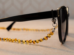 Our amber glasses chain is perfect for keeping your sunglasses or reading glasses always within reach. The natural amber beads provide a touch of earthy elegance, making it an ideal accessory for any season.