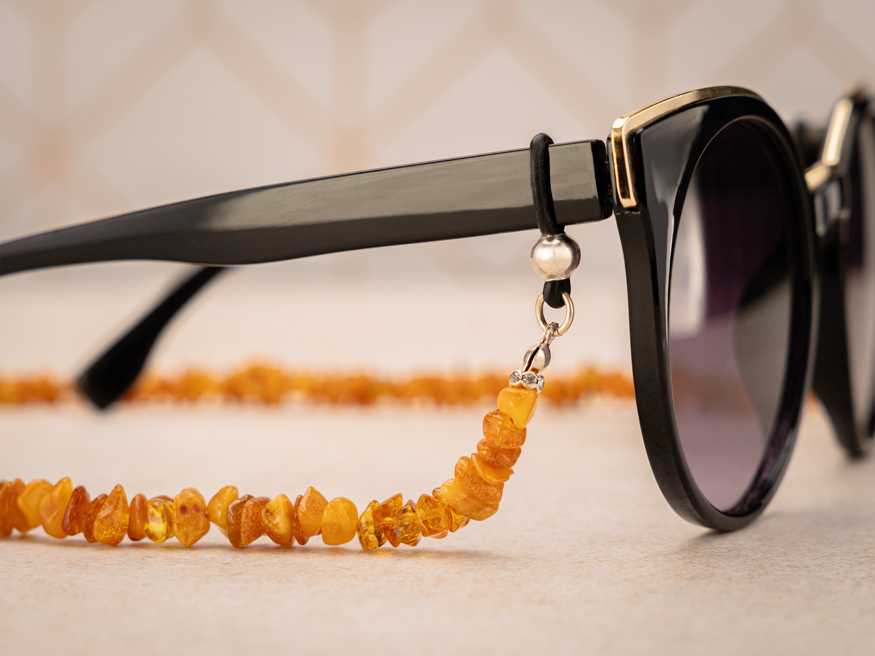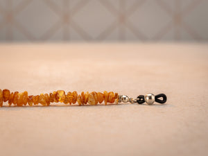 Our amber glasses chain is perfect for keeping your sunglasses or reading glasses always within reach. The natural amber beads provide a touch of earthy elegance, making it an ideal accessory for any season.