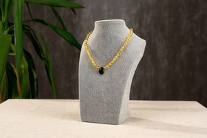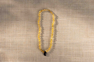 Vaikiškas gintarinis karolis - skaidrūs gelsvos ir vyšninės spalvos gintaro karoliukai