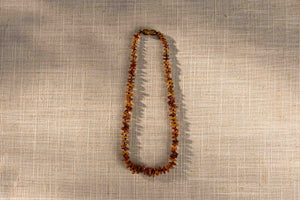 Rankų darbo iš 100 % gintaro karoliukų pagamintas vėrinys pasižymi žavesiu ir patogumu. Pagamintas Lietuvoje ir užsegamas vaikams saugia užsegimo sagtimi.